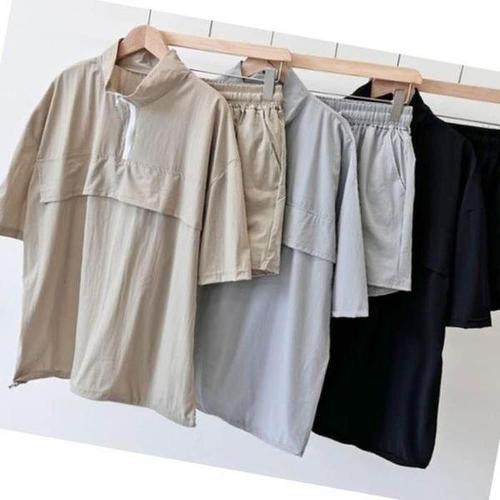 [에이치플러스몰]시원한 바스락 오버핏 캐주얼 아노락 반팔 상하의세트