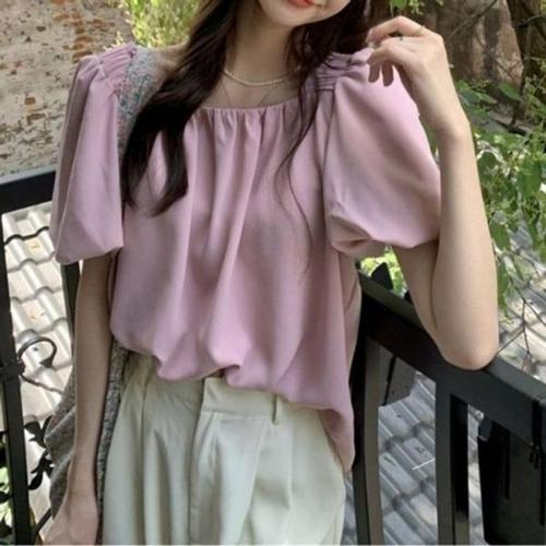 [엄지척]셔링블라우스 퍼프소매 오피스룩 여름티셔츠 꾸안꾸_19642985_667501