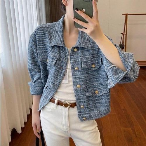 [엄지척]데님 금장버튼 봄 가을 간절기 카라 잠바 트위드 자켓_20338952_667501
