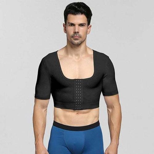 남성 바디 셰이퍼 피트니스 탄성 복부 꽉 끼는 반소매 셔츠 탱크 탑 모양 속옷 슬리밍 가슴 쉐이핑