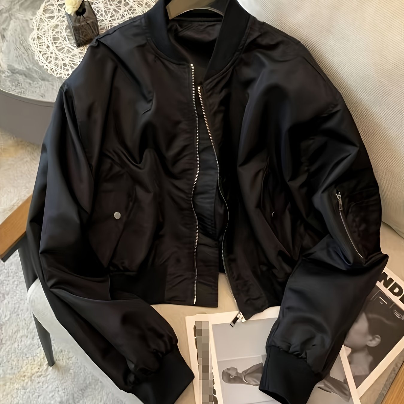 TEMU 2025 여성용 숏 블랙 자켓, 봄/가을 캐주얼 지퍼 가디건, 얇은 야구 비행복 상의