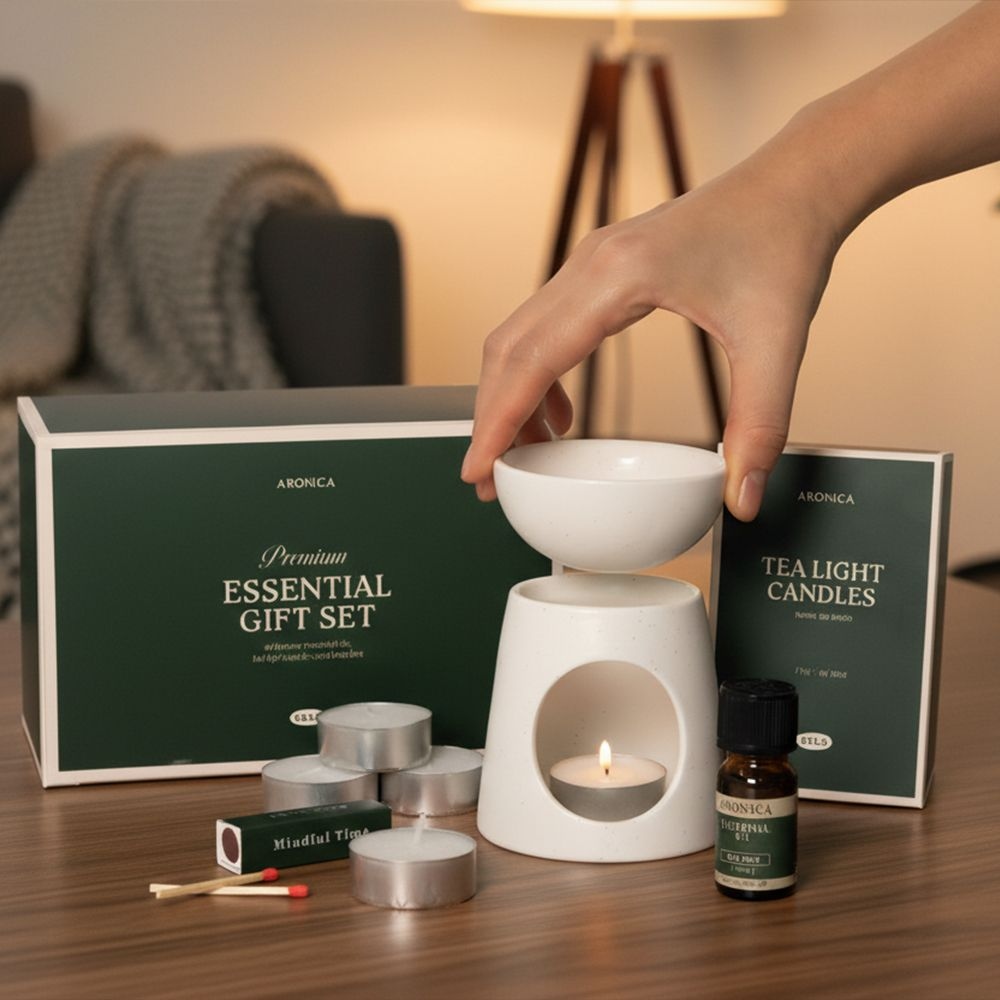 에센셜 아로마오일 캔들버너 세트 (티라이트 캔들 릴렉싱 아로마테라피)