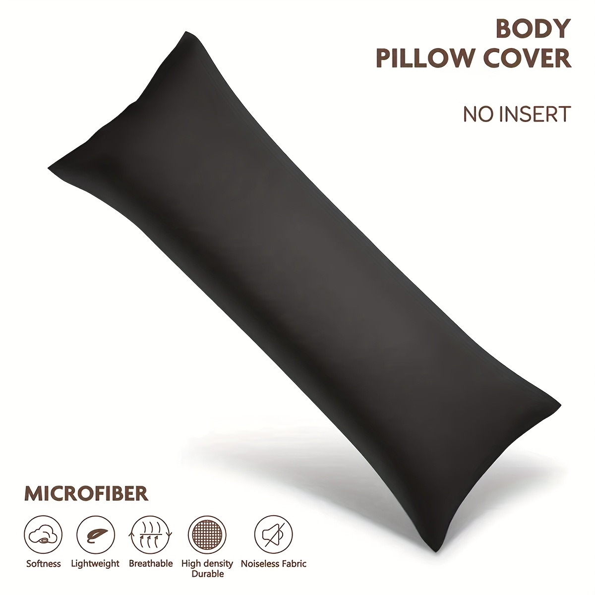TEMU ("베개솜 미포함) 20*54IN 고급 새틴 바디 베개 커버 - 부드러운 촉감, 블랙, 화이트, 핑크, 카키 색상으로 제공, 모든 계절에 적합, 침실 장식, 침실 추가 및 가구에 완벽