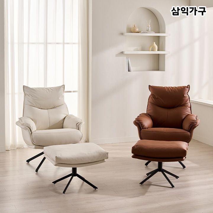 슬로버 1인용 가죽 360도 회전 소파(스툴선택)