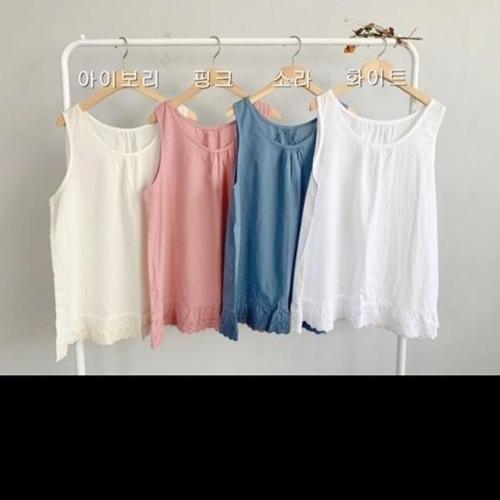 흰나시티 티셔츠 아사면 민소매 레이스 끈나시 밑단 옐로우 면 프리사이즈 잠옷 에 여성
