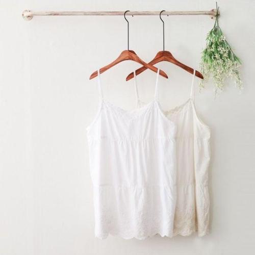 레이스나시 여성 흰나시티 티셔츠 아사면 밑단 레이스 나시 끈나시 시원한 아사 민소매