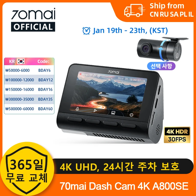 70mai 4K 블랙박스 A800SE 70mai A800S 음성 제어 슈퍼캡타이어 GPS ADAS 차량용 DVR 70mai A800SE UHD Wifi 6 업그레이드 버전