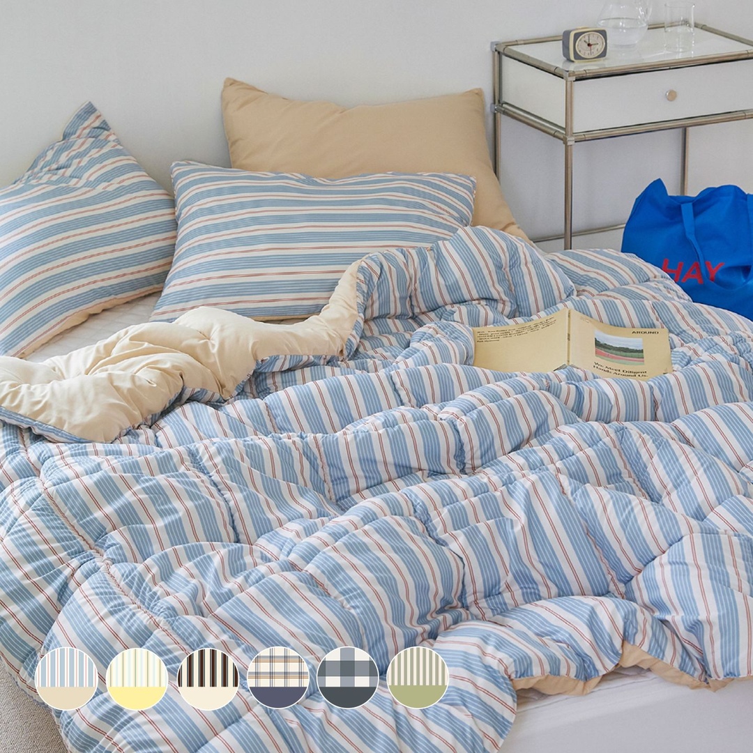 사박사박한 노스텔지아 드림 60수 고밀도 순면 스트라이프 차렵이불 세트 SS/Q 2컬러