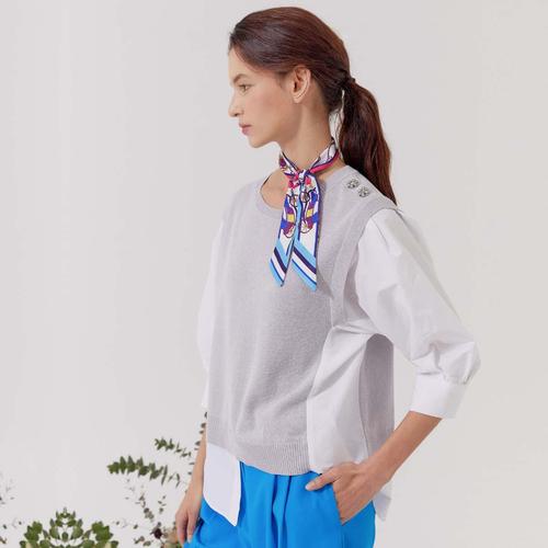 크레송 아이리스그레이 쥬얼버튼 텍스쳐블록 블라우스 R2211BL03_48