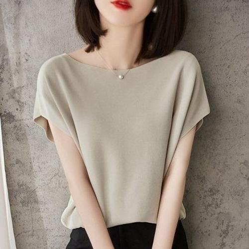 [엄지척]여성 반팔 여름 니트 여자 고급 무지 티 셔츠 ivory_19659444_667501