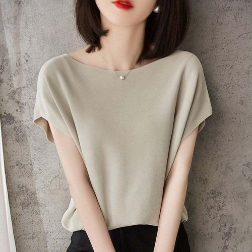 [셀럽하우스]여성 ZHQH8371 반팔 여름 니트 여자 고급 무지 티 셔츠 ivory
