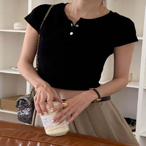[셀럽하우스]여성 WSCP8316 여름 쿨 아이스 골지티 크롭티셔츠 냉감 반팔티