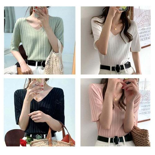 [셀럽하우스]여름 CBAV0449 쿨한 여자 쿨 아이스 니트 브이넥 반팔티셔츠