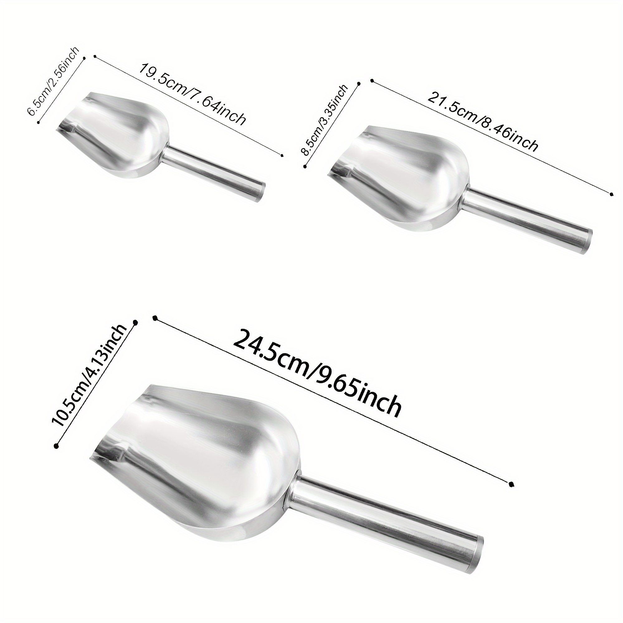 TEMU 3개 두꺼운 스테인리스 스틸 아이스 스쿱, 다목적 금속 스쿱 - 강아지 사료, 고양이 사료, 얼음, 시리얼, 밀가루, 음식, 차, 팝콘, 설탕, 콩, 쌀용 - 두껍고 내구성 있는 디자인, 바 파티 웨딩 애완견 사료, 주방 도구, 튼튼한 구조, 헤비듀티 스쿱, 녹 방지 소재, 고품질 금속 제작, 서빙 스푼, 홈 쿡