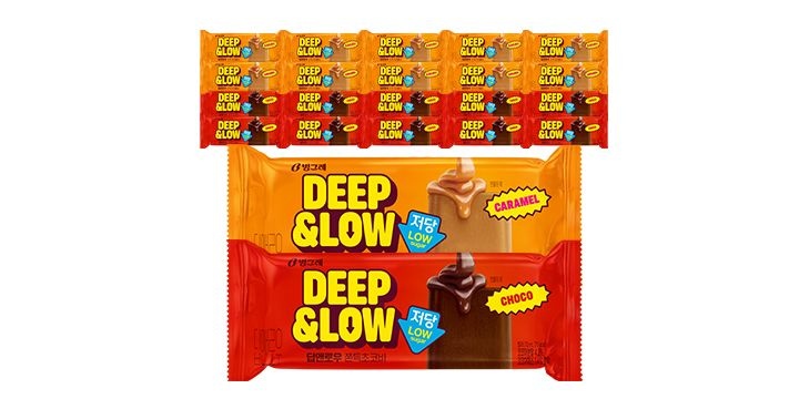[빙그레] 딥앤로우 쫀득 초코바 20개 + 카라멜바 20개 / 저당 아이스크림