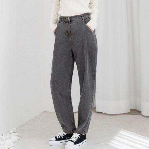 여자 그레이 핀턱 오버핏 뒷밴딩 배기 데님 청바지_19943439_667501