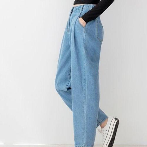 여자청바지 여자핀턱오버핏배기청바지 연청
