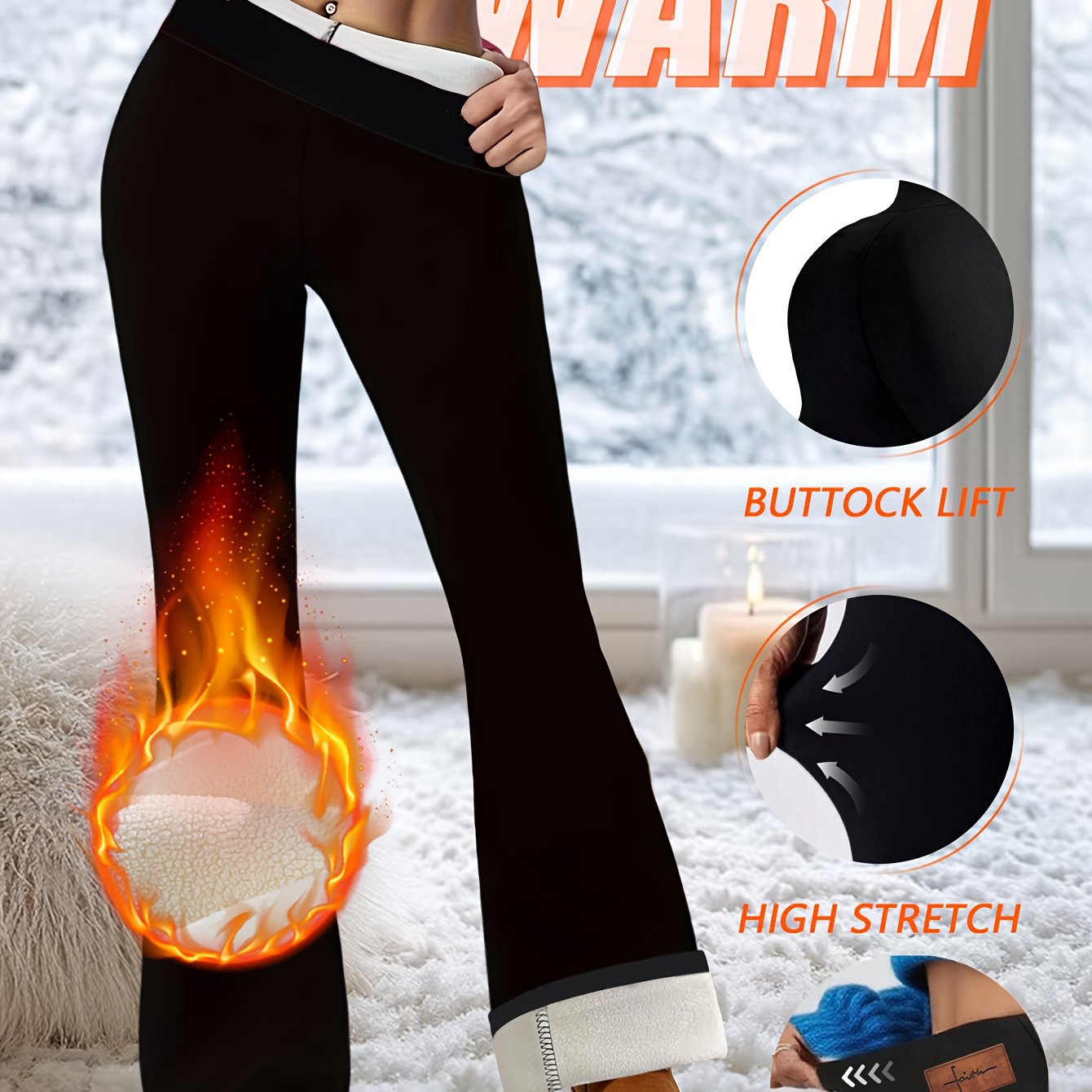 TEMU 1개 여성용 안감 플레어 팬츠*겨울용 하이웨이스트 방풍 와이드 레그 벨 바텀 트라우저*따뜻한 캐주얼 슬랙스 S 사이즈용, 탄성 허리 블랙 롱 팬츠,*패셔너블 우아한 스노우 부츠 컷 조거 팬츠*슬리밍 베이스 레이어링 클래식 보온 안감 부스 스타일 스트리트웨어 일상 고딕 파티 클럽 새해 적합