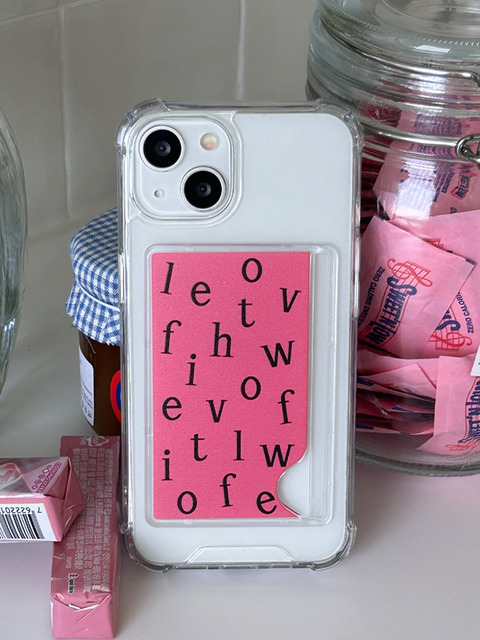 [필위드러브] 카드수납 젤리 폰케이스 - logo alphabet (hot pink)