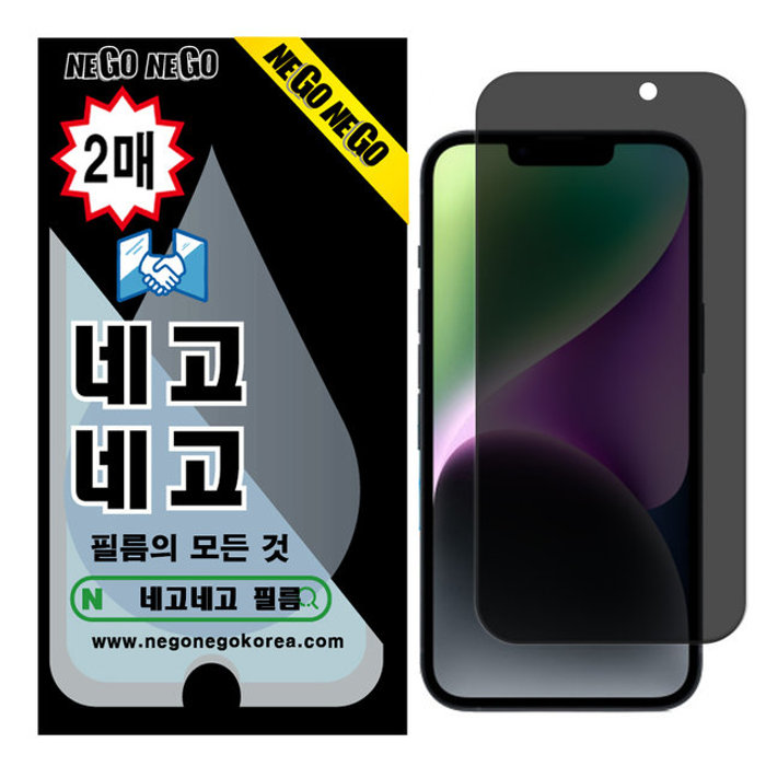 네고네고 네고네고 아이폰14플러스 사생활 프라이버시 지문인식 강화유리 액정보호필름 2매