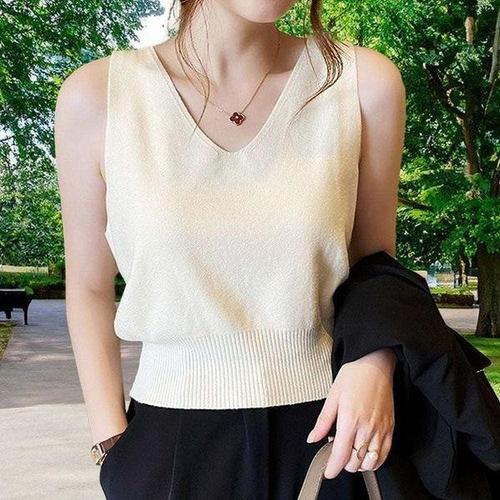 [셀러허브_여성트랜드패션]ONM 나시 여름니트 브이넥니트 이너 니트 여름 아이보