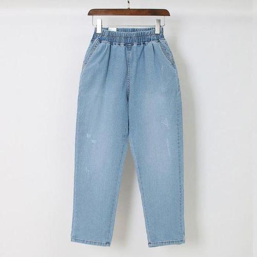 [셀러허브_여성트랜드패션]아이우먼 유러피안찢청밴딩팬츠 LOU337M504 빅사이즈