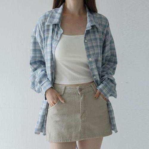 [셀러허브_여성트랜드패션]아이우먼 체크여리끈박시핏남방 RDV354M509 빅사이즈
