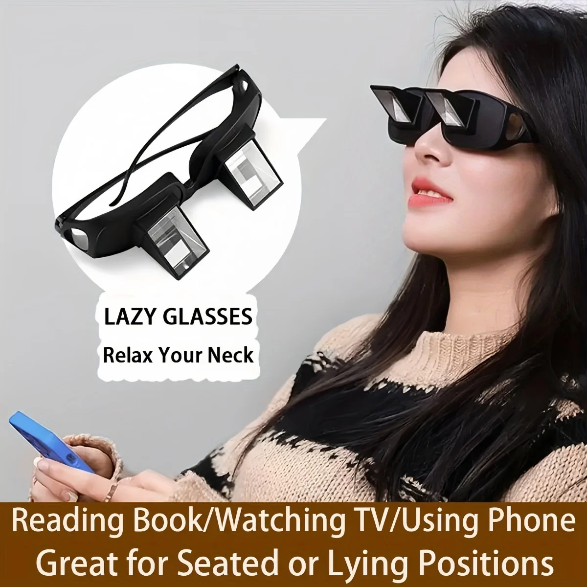 침대에서 독서 및 TV 시청을 위한 레이지 글래스 베드 프리즘 수평 고화질 안경