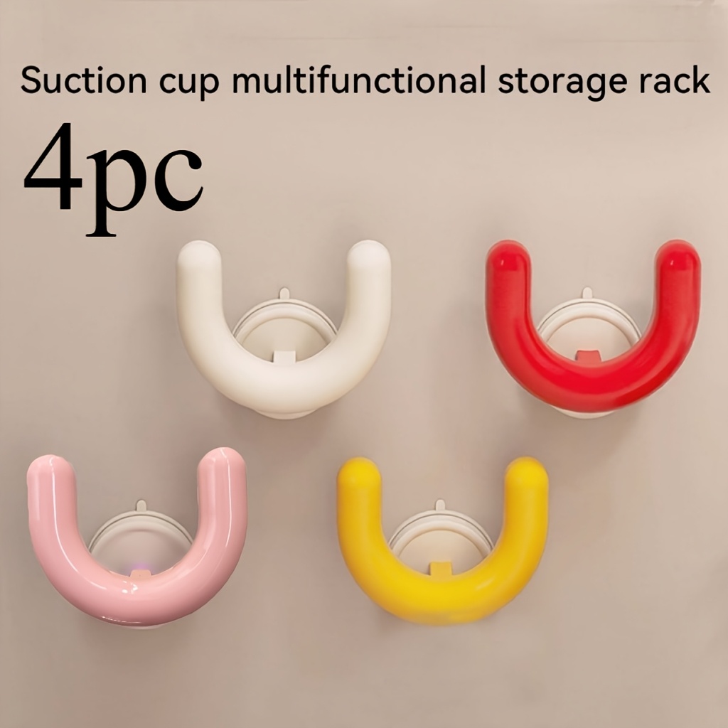 TEMU 4개 흡착 컵 신발 정리대 & 수납 후크 | 강력한 플라스틱 벽걸이형, 욕실, 샤워, 주방, 기숙사를 위한 색상 코드 후크 - 공간 절약, 드릴 없이 설치, 다기능, 다용도 후크