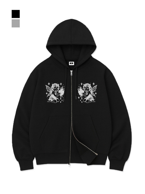 [2-WAY] 판타지캣 피그먼트 후드 집업 스모크블랙