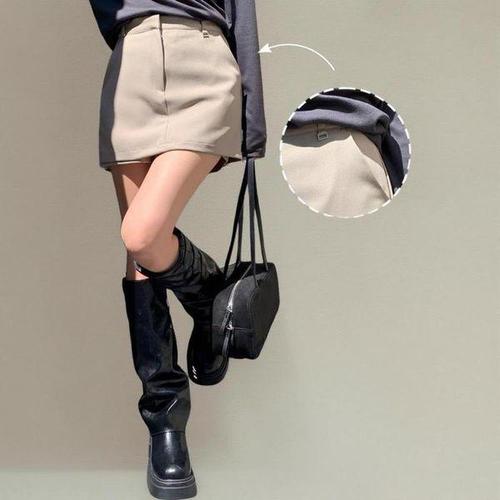 [옷자락]여성 단색 클래식 팬츠 안감 D링 미니스커트
