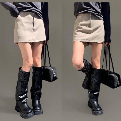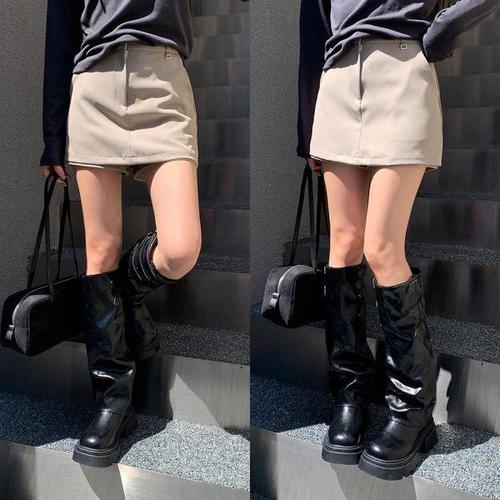 [신상오픈런]여성 단색 클래식 바지 안감 D링 미니 스커트