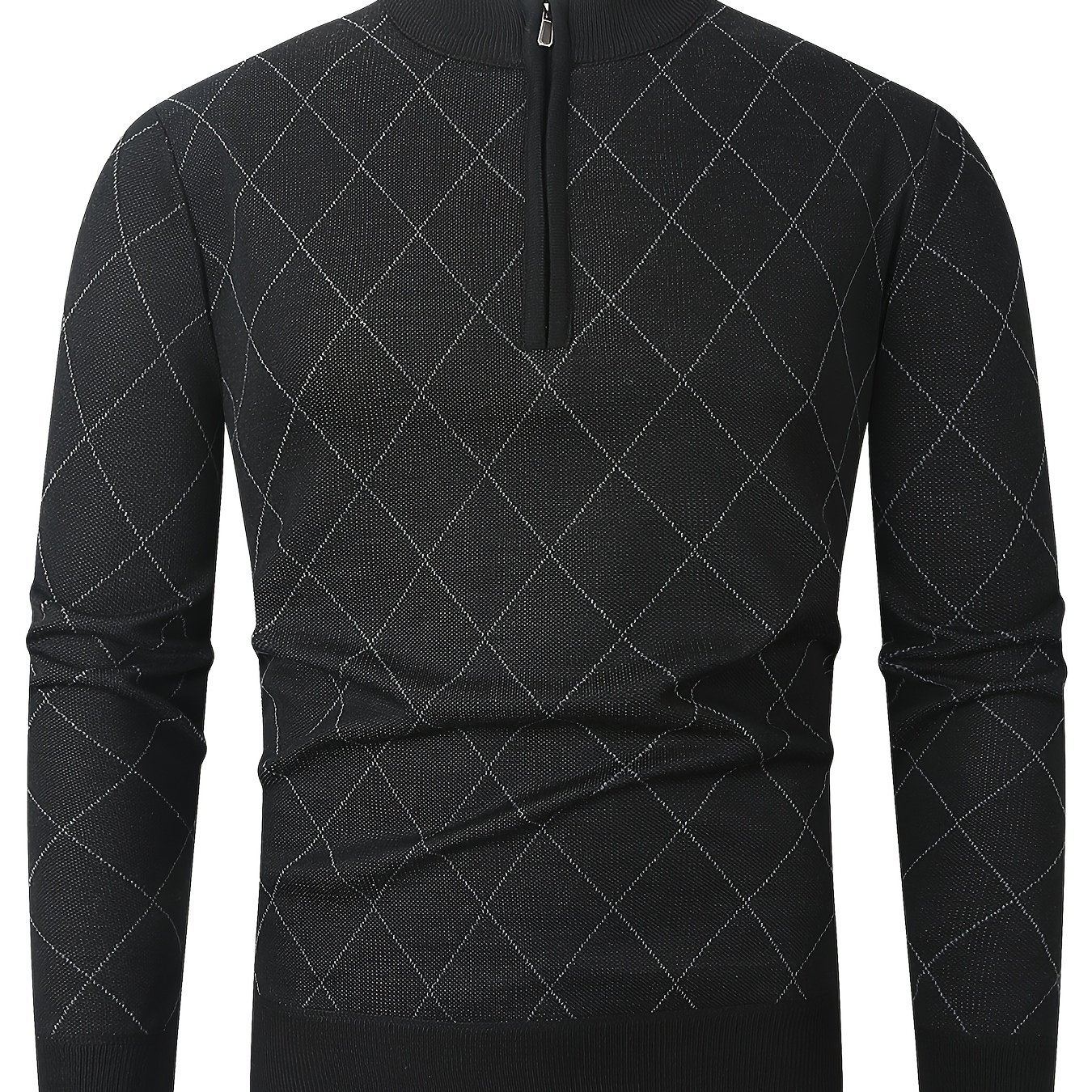 TEMU 남성용 쿼터 집업 풀오버 스웨터, 니트 자카드 마름모 스웨터