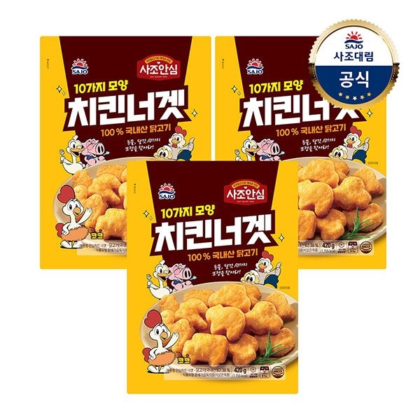 사조안심 순살가라아게 1000g*1개+안심치킨너겟2*1개+안심라이스텐더*1개