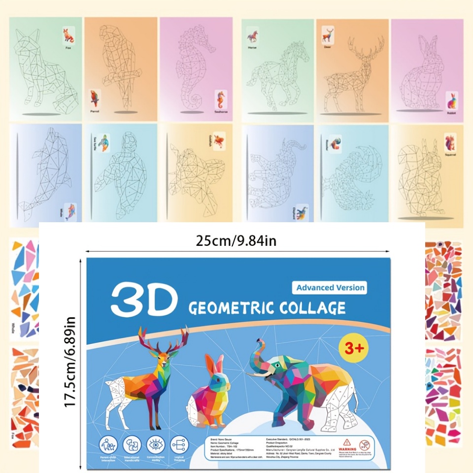 TEMU 스티커 퍼즐 그림책 - 성인을 위한 창의력 및 운동 능력 개발 교육 활동 책, 동물, 모양, 색상 포함 - 생일, 크리스마스, 할로윈을 위한 훌륭한 선물 옵션 - 재사용 불가능한 스티커