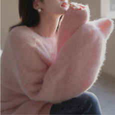 여자 윈터 페미닌 앙고라 모헤어 라운드넥 니트