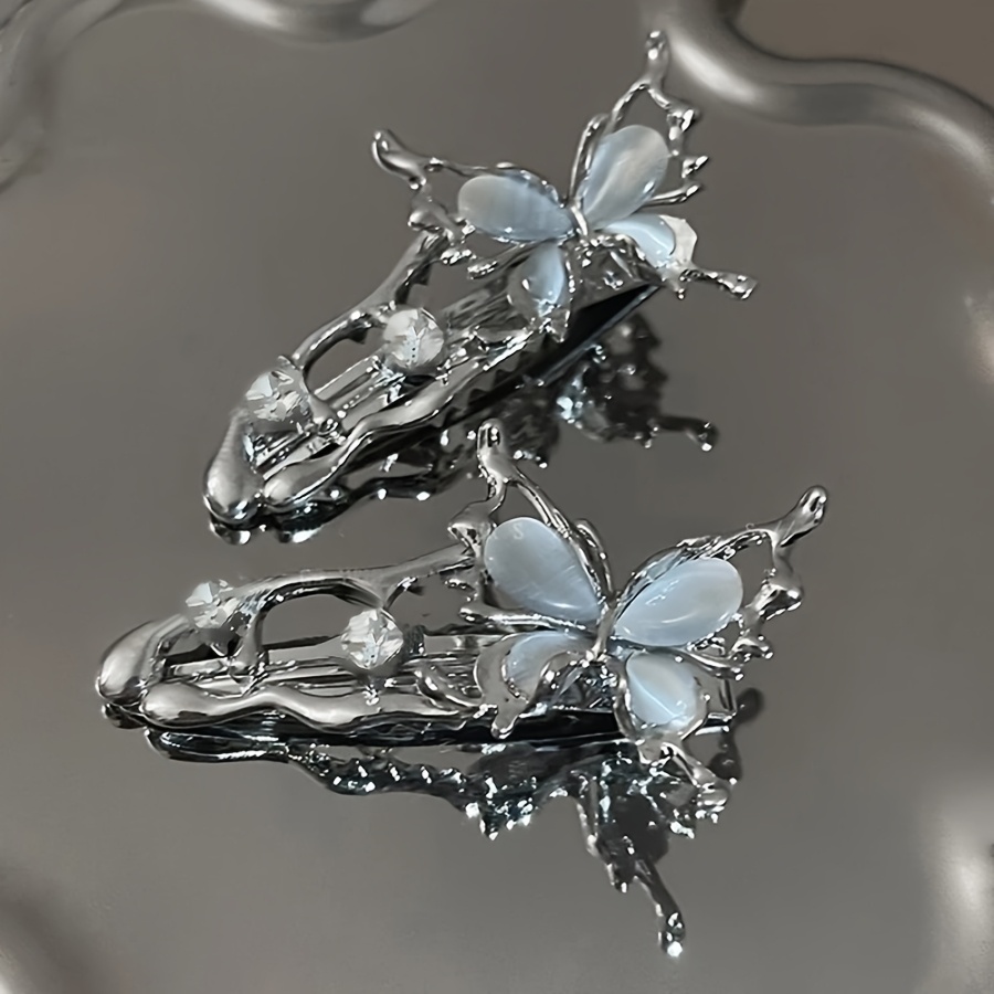 TEMU 2개 Y2K 우아한 실버 리퀴드 메탈 헤어 클립 - 불규칙 나비 지르코니아 디자인, 보우 & 홀로우 스타일, 여성용 내구성 플라스틱 헤어 액세서리, 업두, 포니테일, 번 만들기용, 메탈릭 마감