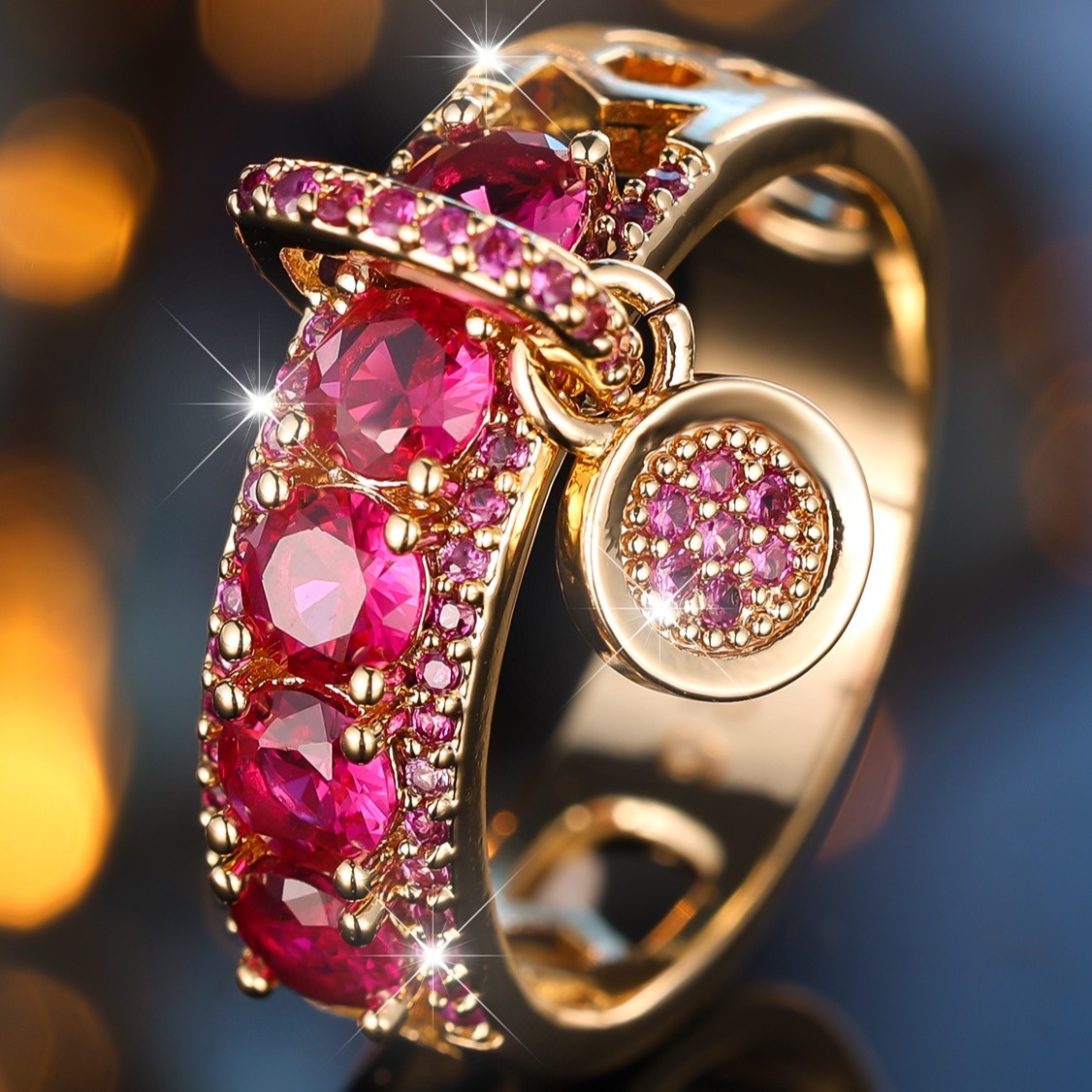 TEMU ANGOL 우아한 로즈 레드 합성 지르코니아 반지 - 반짝이는 액센트가 있는 클래식하고 우아한 디자인, 내구성이 뛰어난 구리 합금, 여자친구를 위한 완벽한 선물, 데일리 착용 또는 특별한 날, 십 대, 특별한 날 주얼리