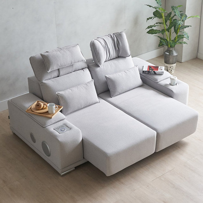라운레스트 전동 소파베드 리클라이너 리모컨 가죽 쇼파침대 모션 슬라이드 공간활용 침대, 화이트