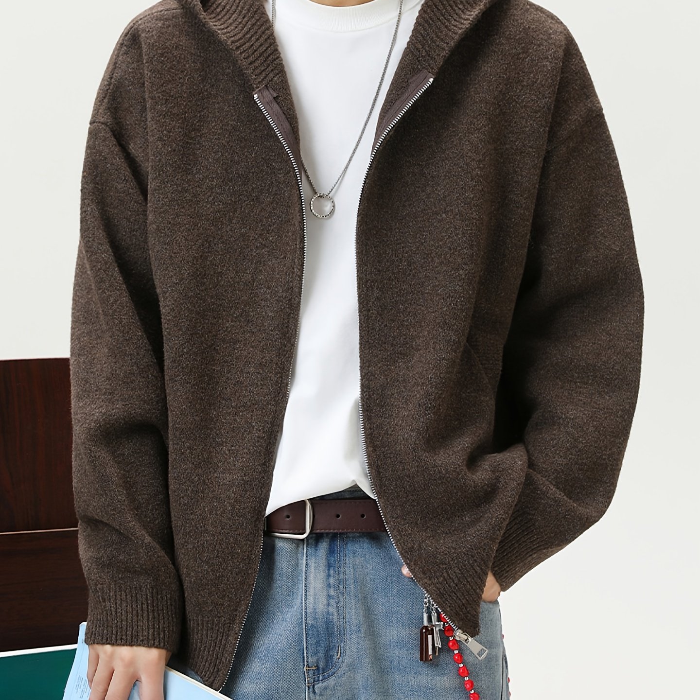 TEMU 남성용 캐주얼 따뜻한 플리스 안감 후드 가디건 - 단색, 지퍼와 포켓