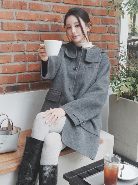 2021 가을 겨울 신상 모직 코트 여성 여성 코트 모직 아우터 하프 오버핏 반코트 겨울
