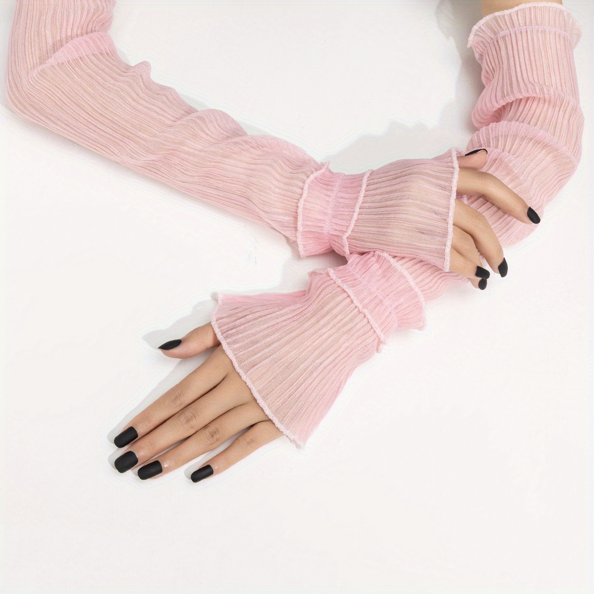 TEMU 여성용 우아한 레이스 팔 보호대 - 여름 패션을 위한 통기성, 보호성, 신축성이 뛰어난 디자인, 볼륨이 있는 팔 보호대, 야외 활동에 이상적인 제품