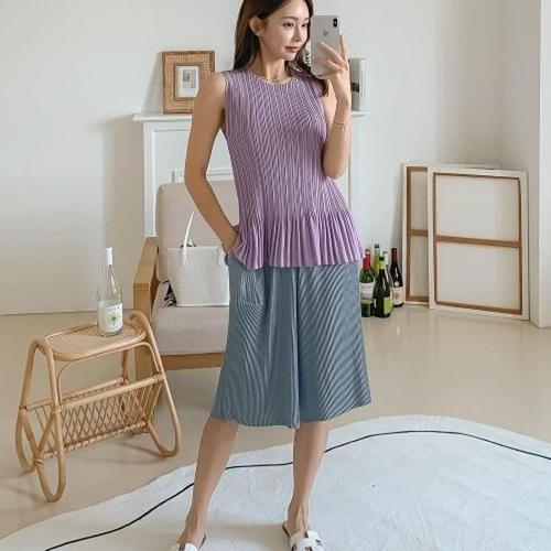 [다잇템_패션]여성 넓은 SS 칠부 H라인 아코디언 야들 팬츠