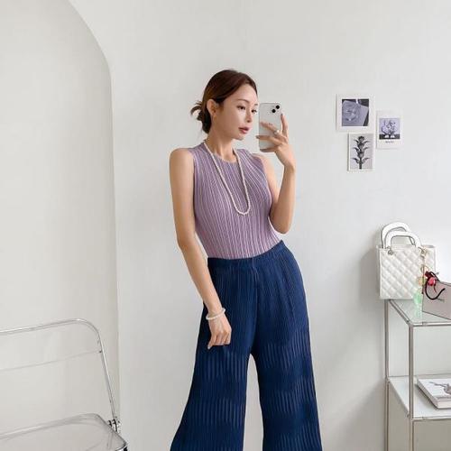 [옷자락] 여성 야들 7부 와이드 플리츠 여름 일자 밴딩 팬츠