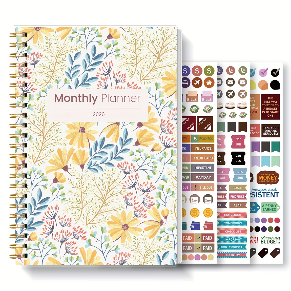 TEMU 1개 2026.1–2026.12 A5 월간 플래너, 1년 달력 일정장 노트북, 월간 페이지 포함, 생산성, 학교, 직장, 사무실 및 개인용 스파이럴 오거나이저, 스티커 3개 포함|캘린더