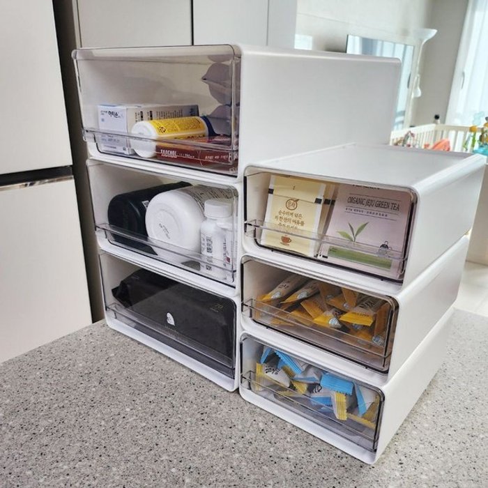 팬트리 중형 적층 1칸 쌓아 쓰는 서랍 수납함커피보관함 문구정리함 주방 약상자