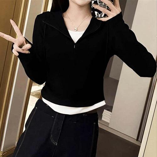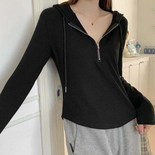 [셀럽하우스]여성 UPQM7350 봄 운동 심플 일상 쇄골 하프집업 얇은 후드티