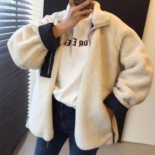 [옷은날개] 여성 양모 뽀글이 후리스 양면 항공점퍼 배색 컬러