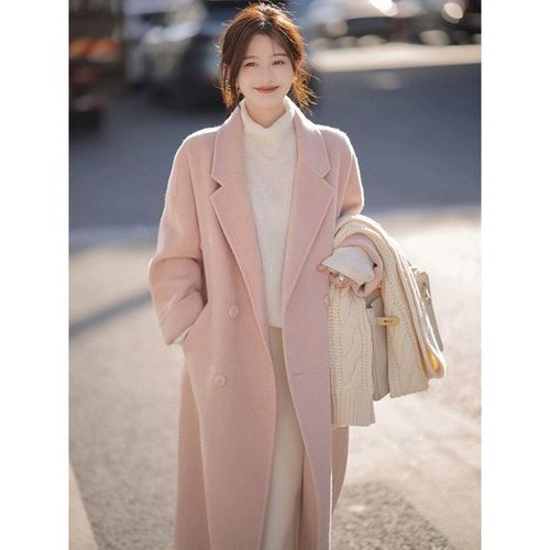 양면 플리스 여성용 롱코트 x 핑크 XS 52.5kg 이하