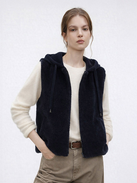 [로르 서울] 양모100 니트 후드 베스트_SOVS251208